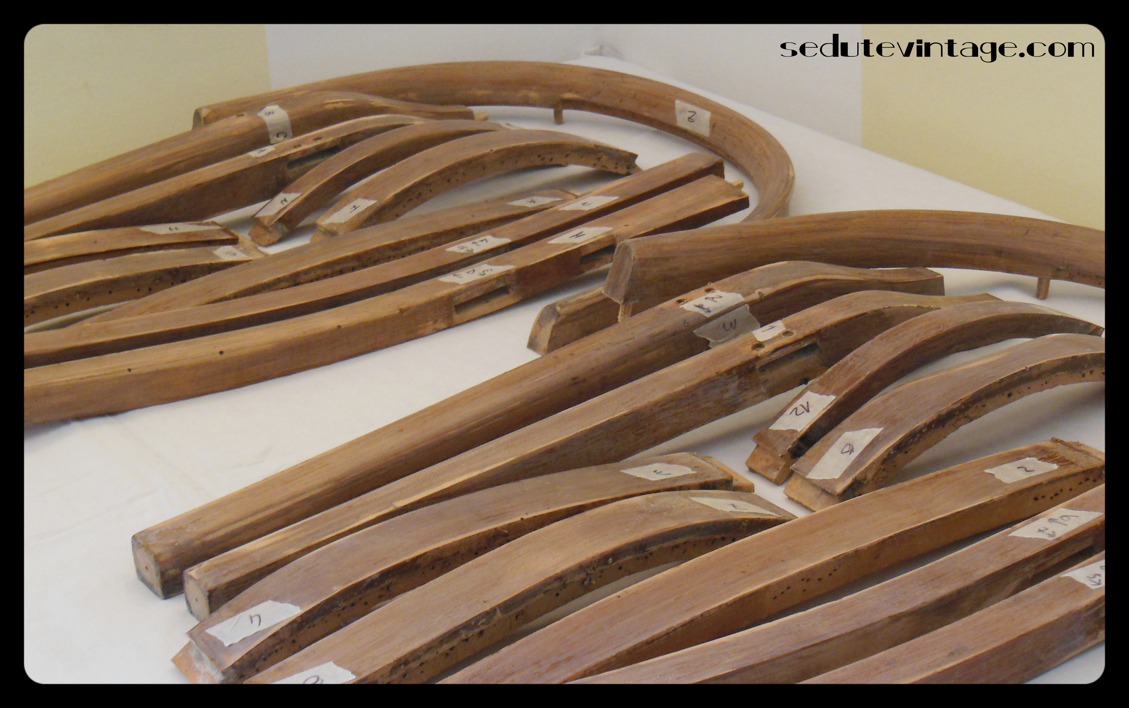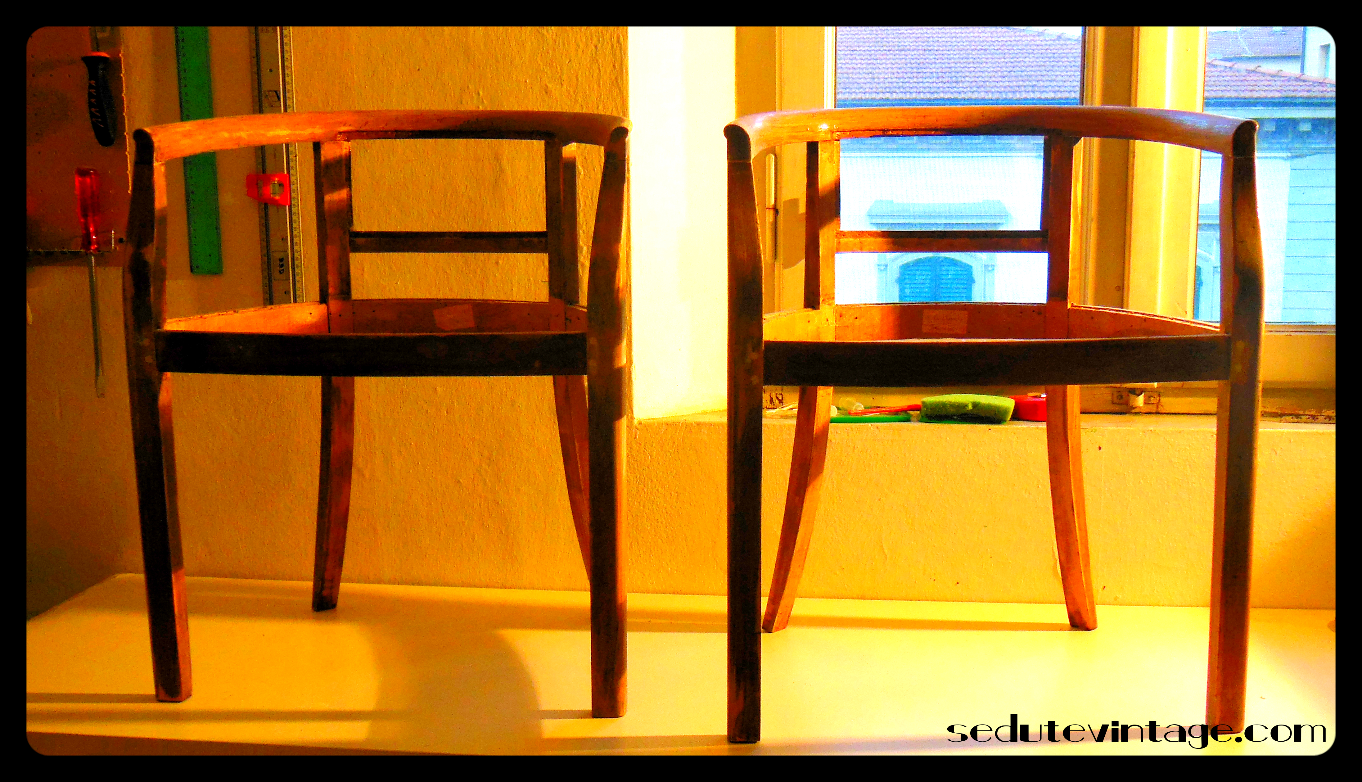 I mentioned in my earlier post that this cute pair of side chairs were nasty and I was not exaggerating. It took forever to remove the old fabric, stuffing and springs. Glue was used everywhere there was exposed wood and some joints were literally screwed together (that hurts!). There was no other choice than to completely disassemble them and glue them back together: four photos to describe the work-in-progress!!