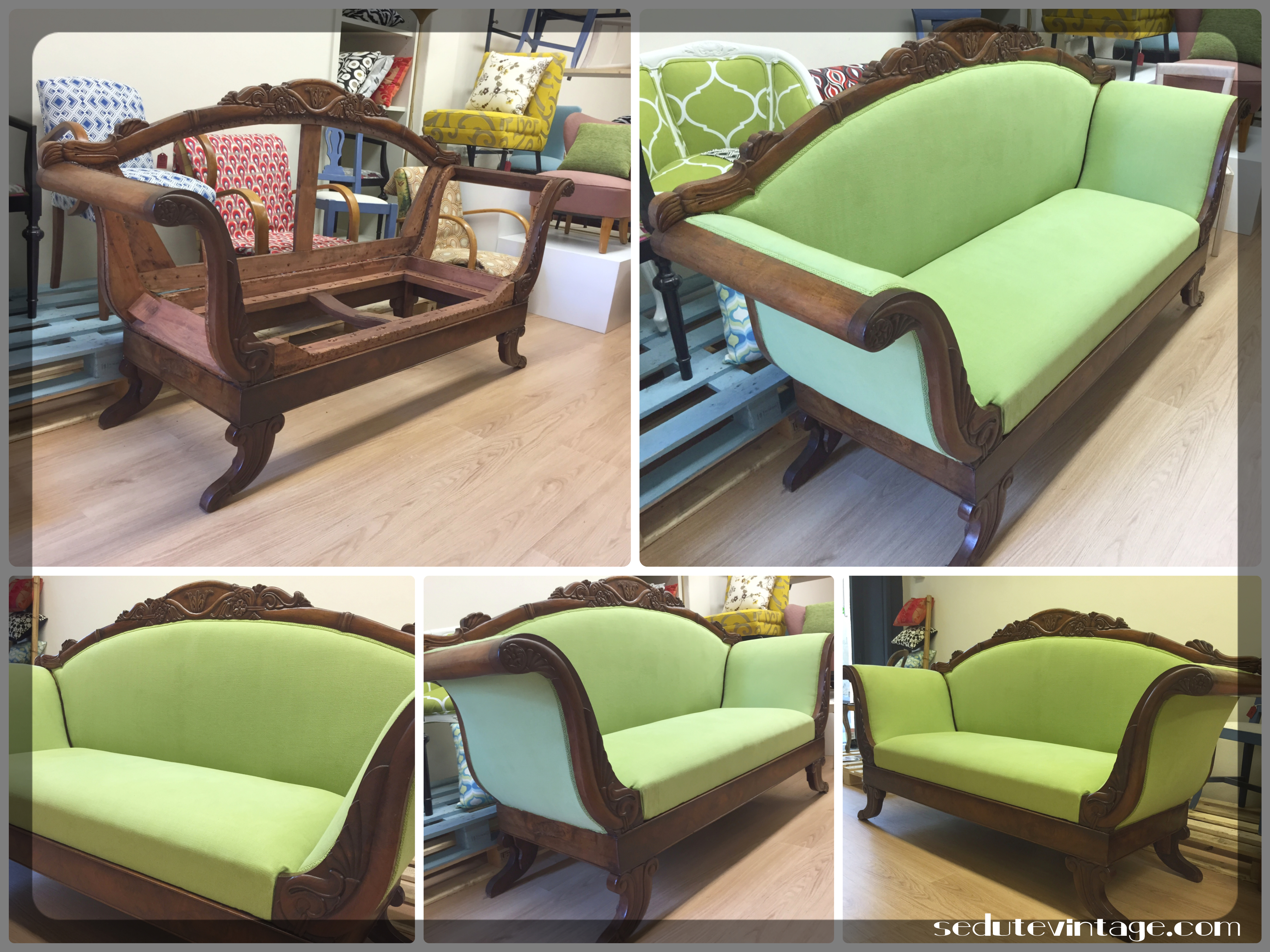 Divano Carlo X – Charles X sofa Restauro completo per questo divano Carlo X con scelta di tessuto verde mela – su commissione This Charles X sofa underwent complete restoration and then was upholstered in lime green – on commission Share this: Click to share on Facebook (Opens in new window) Facebook Click to share on Pinterest (Opens in new window) Pinterest Click to share on X (Opens in new window) X Click to share on LinkedIn (Opens in new window) LinkedIn